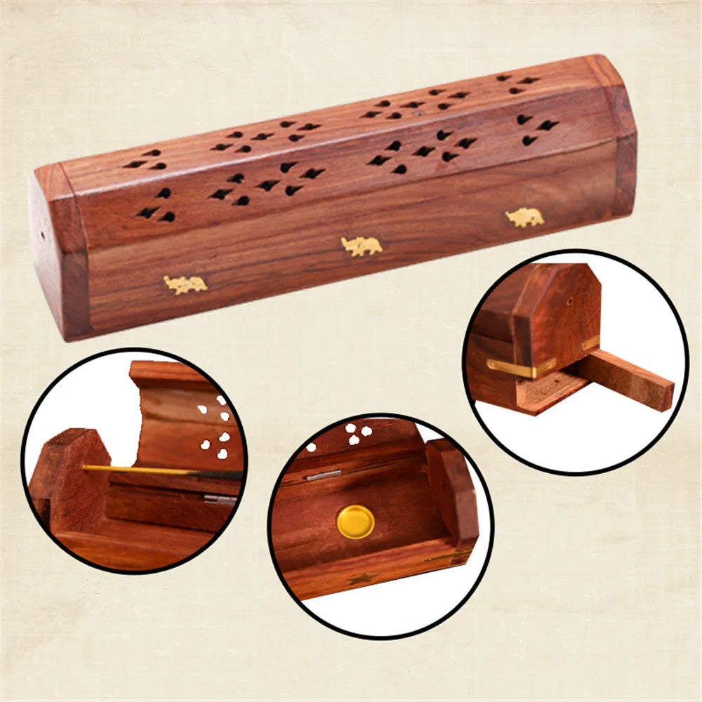 Bamboo Incense Burner Fragrance Box Tower Incense Seat Joss Stick Box Lying Censer Hand Carving Incense Stick Holder Teahouse